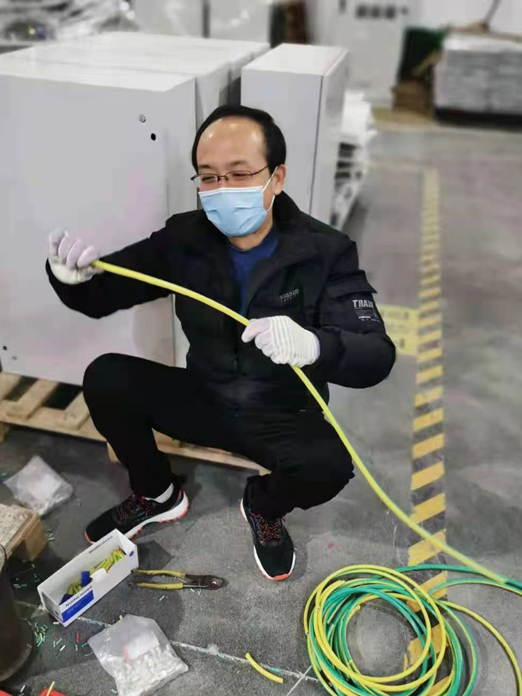 終于在凌晨5點半的時候,第一批電器元件送來了,盡管是在寒冷的冬天,歐輝遠人也都脫去了厚重的外套,挽起了袖子,熱情似火的大干起來,就連女將也毫不遜色,真是巾幗不讓須眉呀!